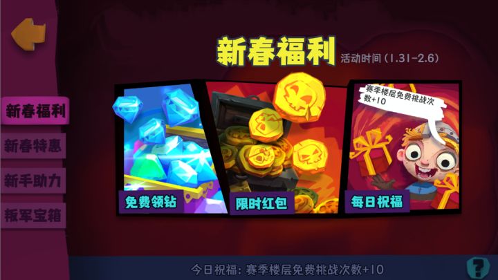 各位骑士大人大家好!辞旧迎新,喜迎春节!小K在这里给大家提前拜年啦!2022年新春活动即将开启,一起来看看活动内容吧~一、新春福利放送-每日领取新年红包活动时间:1月31日-2月6日每日首次登录游戏即可领取钻石 x 288 ,可在游戏界面左侧领取此外,春节当天(2月1日)还可领取钻石 x 666! 二、限时登录红包-最佳手气决定是你活动时间:1月31日-2月6日每日12:00-14:0