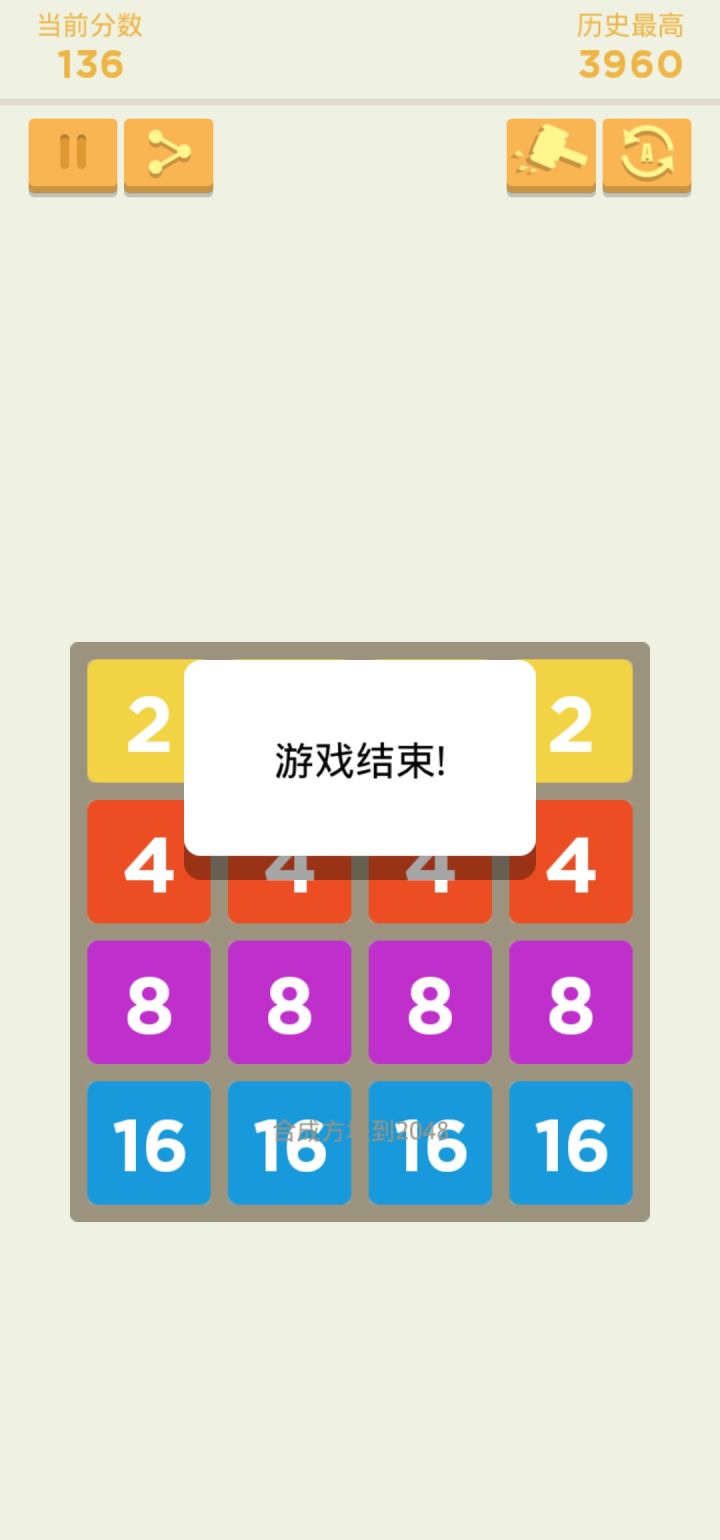 这2048不行啊我不就多往下划了一下,它咋就判定我输了呢,我这哪里输了😾