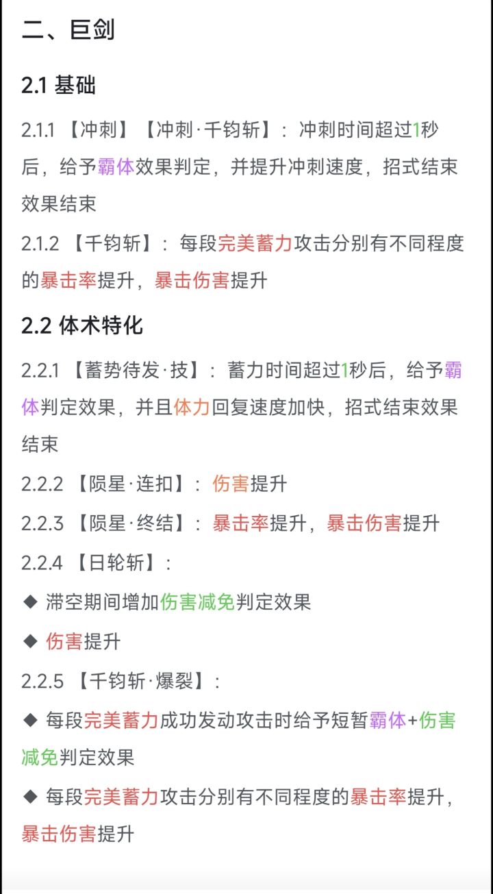 今天我们聊聊大剑,不谈伤害,只谈机制,大剑算是普武里不算缺伤害的一把武器,但是由于机制原因,11命跟其他技能不能很好联动(根本就是独立的11命),导致大多数被迫玩拜年剑法!我的思路是由1命蓄势待发-技来联动体术全部技能!1 蓄势待发-技 发动效果动画改为类似太发蓄力一二三效果,给于其他技能不同的效果!比如拜年,二蓄给体力加速,三蓄给霸体,差不多跟官方改不多这个意思2舞月连斩做常规的回体攻击手段