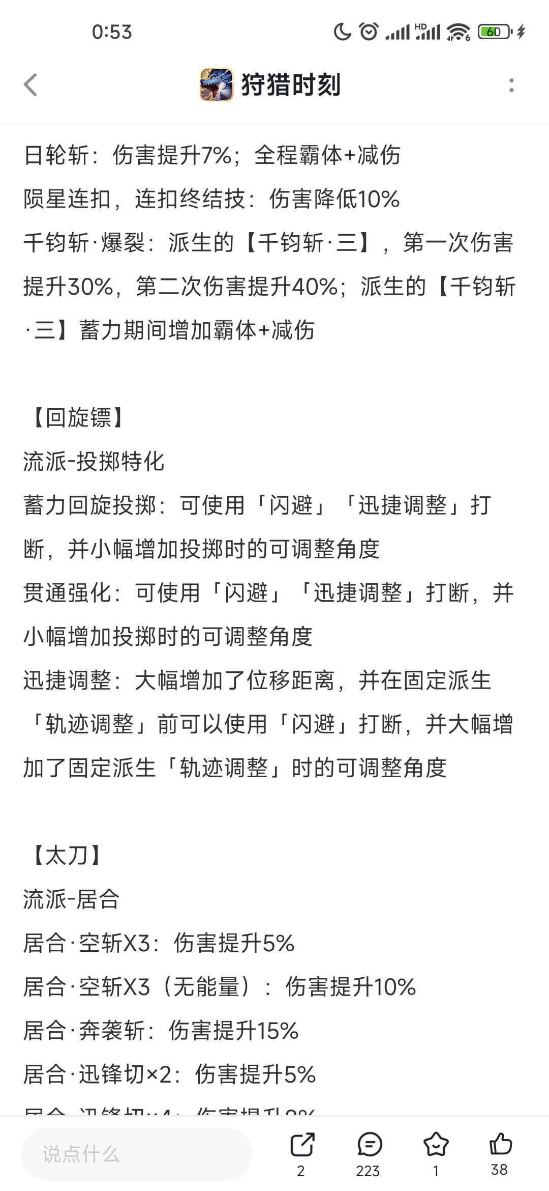 先说一下回旋镖更新后的一个bug迅捷调整后可以接翻滚打断轨迹调整,这个没问题,但是问题是打断的只是动作,实际上只要用了迅捷调整后,还是会改变镖的轨迹,麻烦修复一下,再说一下19号更新后,和回旋镖增强前的区别,伤害有人说削了,这个我没看出来,我先说一下机制,1: 迅捷调整(滑步),距离增加,但是这个迅捷调整没有无敌而且目前bug还对导致切镖,基本没人用,没有翻滚好用。2: 镖在回来的时候可以