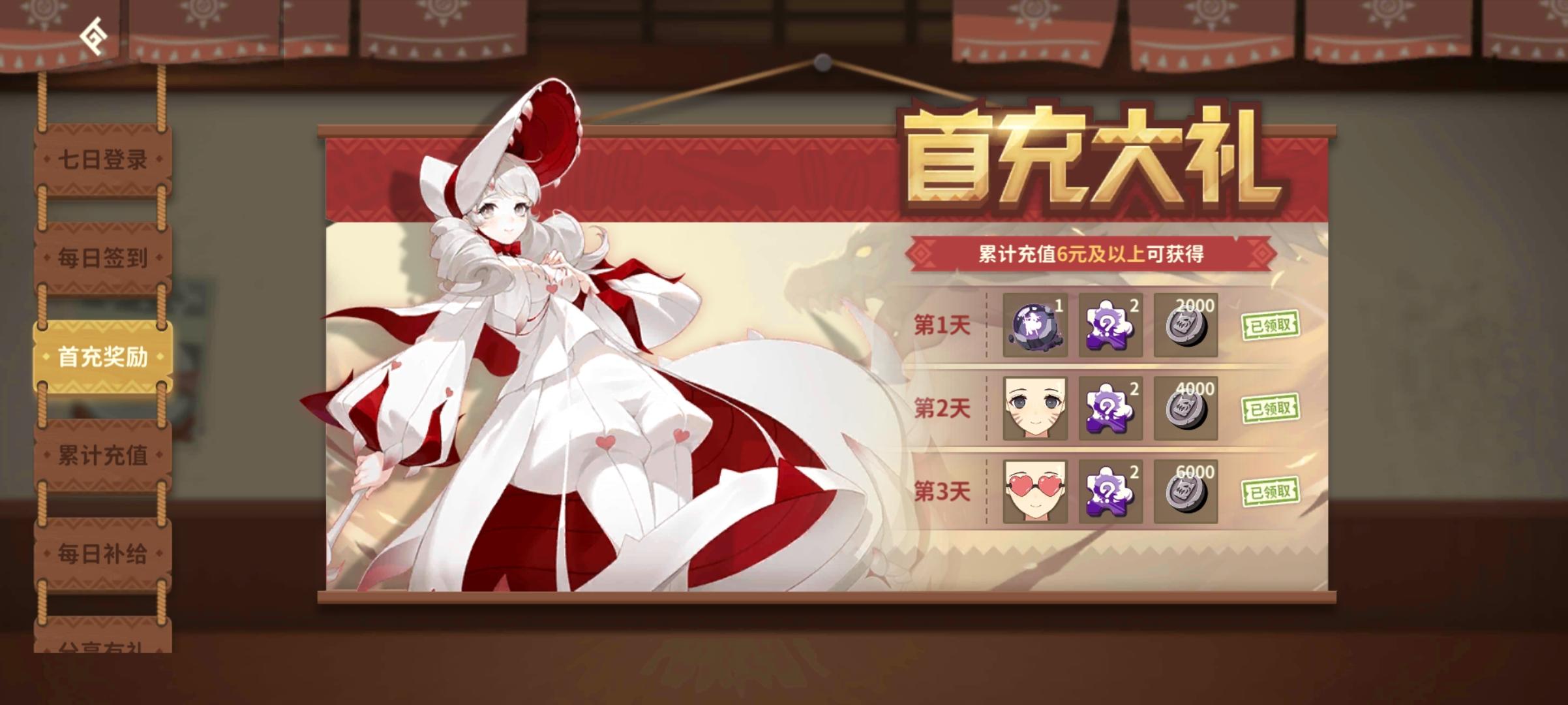 今天刚开的服,刚刚充了首充,首充奖励直接显示三天都领了,我没收到,背包里面也没,麻烦官方修复下