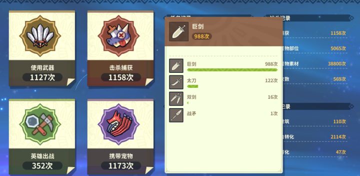 属性方面选择了爆伤套,总的来说,9星之前大剑都很强势,之后多动症多了,倒地机会很少,基本全靠平A了,设计的那么多技能,基本无实用场合,倒地就是连扣,大部分就是重击,翻滚,重击,翻滚...期间放弃过一次,转玩太刀了,听说太刀飞天无敌多,攻速快,伤害也高,就转过去玩了一会,感觉还行,就是飞天下落的时候,总是能碰到BOSS拍你,就很气
