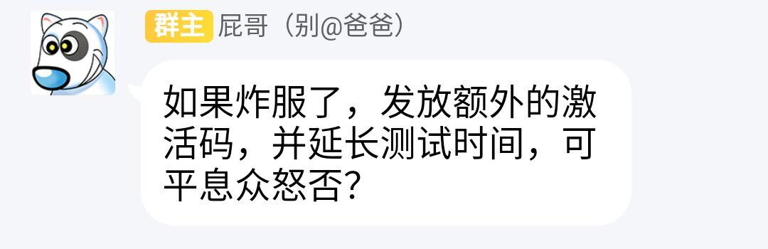 首先,再次发放测试资格,这次为了更多的人都能参与进来,我们准备了新的抽码活动,首先转发狩猎时刻测试啦等相关字眼图片到一万个群并且八万次转发,截图晒到论坛,然后再随机抽取三名玩家参与测试,这样就是一万零三个资格了。还有测试延期的问题,原先决定的时间再加一个星期(因为炸服要炸一个星期)以上是对这次炸服的补偿。还有女装的事我并不感兴趣,所以你随意。