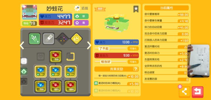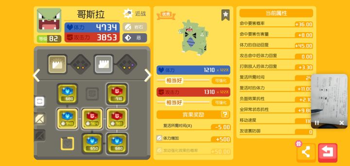 我很喜欢大比鸟,虽然他喵的动画里小智把大比鸟(比雕更好听!!)丢在森林里再也没有回去看到过它!我的腕力等级在80级左右最后一个格子是加攻击所以我也不太着急去升它了,菊石兽已经满级了,大比鸟也快满级了就这一两天的事,攻击力和血量1w比5q算是我比较满意的,我是面板党。