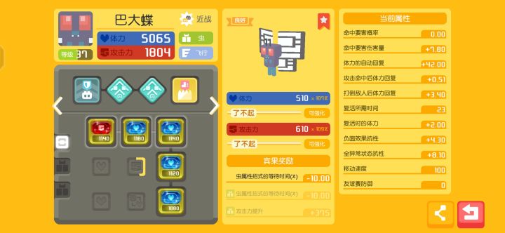 最后一个是我谈不上喜欢的末入蛾(摩鲁蝶),不过是动画里还是游戏里出场率都不高,况且在动画里往往都是作为反派使用的宝可梦出场,更谈不上好感存在了。在本作里(原作中)作为本身就能学会超能系的虫子可能是它的一大看点了。本身也是融入它的看点,唯一能看的技能只有超能系,本身也能学会超能系的大招精神强念可能是它最后的倔强吧。冰菓的选择还是同上不需要冷却时间以及增加伤害,攻击或者体力随便选3个就行了,或者增加弱化的概率也是个不错的选择。