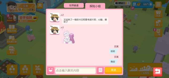 那张图是我刚刚截的,之前的聊天记录没有了,上线一直在跟他聊很多都是关于宝可梦的动画里的还有本作游戏里的,要点:希望大家看一下小组的任务,每周的首领活动很重要!!!每天的剪影任务很重要!!一定要做!!小组聊天记得看!!!虽然国服魔改挺多的,但是这不耽误我玩宝可梦,国际服单机版早在几年前就通关了,花了几百4个锅子一堆奖励直接开局通天,但是真的挺没意思的,没有人跟你分享没有人跟你聊天,就算是原作也有线上比赛功能呢更何况一个单机呢?