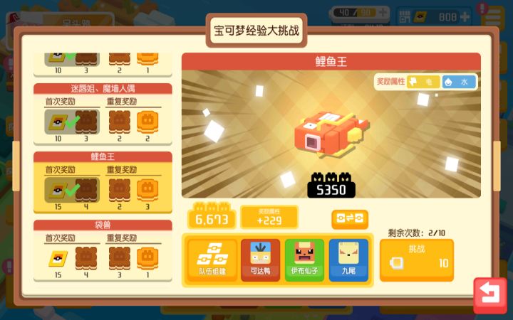 我带的是20级鸭鸭,36级火伊布,36级九尾