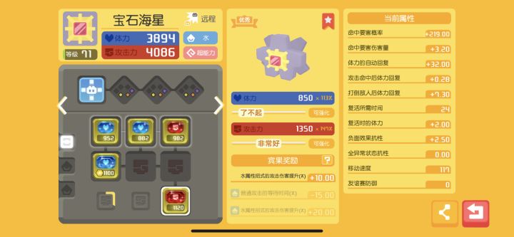 刚煮出来练好技能的宝石海星 可惜之前活动没玩不是热水海星,水泡手也不错,30%伤害加成太猛辣