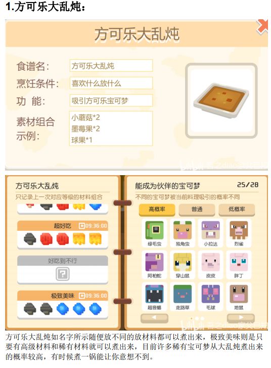 宝可梦大探险全食谱—宝可梦大厨教程(一)(都是上测的截图公测食谱看这个就对了)不能发长篇大家想看完可以去b站看我的文章https://www.bilibili.com/read/cv11214692