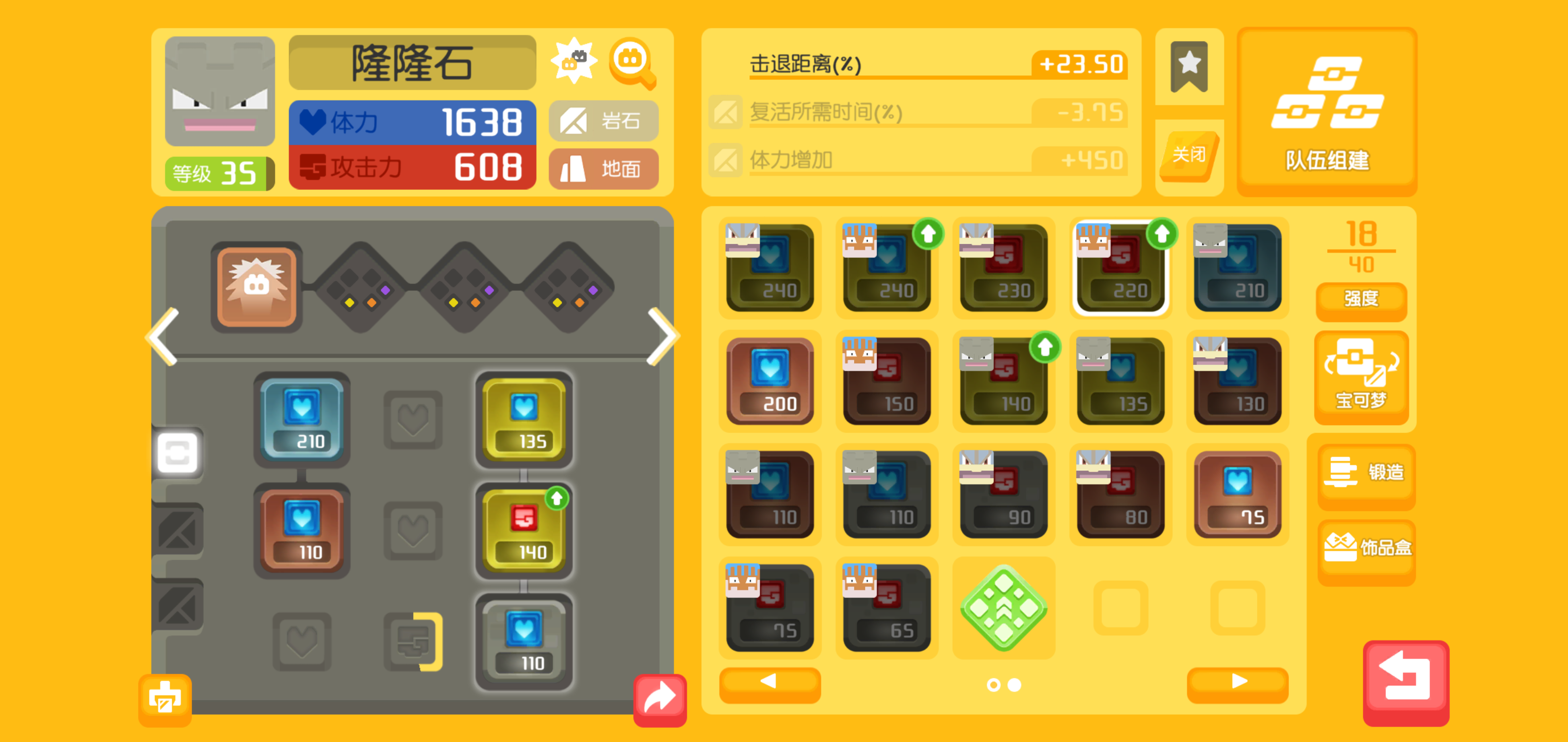 在宝可梦大探险中,小拳石技能推荐两个变硬和挖洞,技能冷却时间都是5S。小拳石属于岩石地面系,小拳石是好用且易得的肉盾,技能不用太纠结,血厚抗打就行。在宝可梦大探险中,小拳石会在25级进化成隆隆石,之后在42级时还可以进化成隆隆岩。想要提升宝可梦等级的话,除了日常推图之外还可以对宝可梦进行特训,特训可以获取大量经验,特训也可以分为使用经验值道具或是使用多余的宝可梦进行特训。经验值道具就是强化饼干,