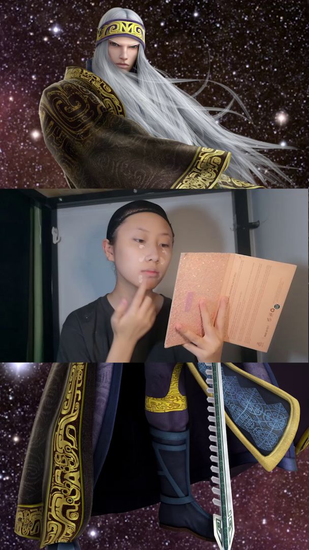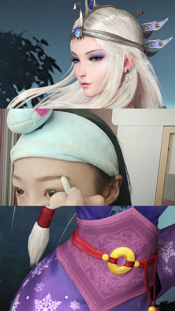 @秦时明月世界手游 看我变身霸气庄叔!卫庄是一个典型猛男拥有高高的颧骨,高高的眉骨,高高的鼻骨和高高的眉头。我虽然有高高的颧骨但是完全不够(我为什么想不开出卫庄,为什么)所以脸上先来个三斤修容,不只是阴影,颧骨,鼻梁和额头的高光也非常重要,于是我变成了外星人卫庄的白眉毛真是让我操碎了心,先用眉笔勾轮廓,再往里糊粉底液和白高光的混合物于是来到最令我难以置信的环节:成年庄的眼睛那么小吗!!只能按着形状
