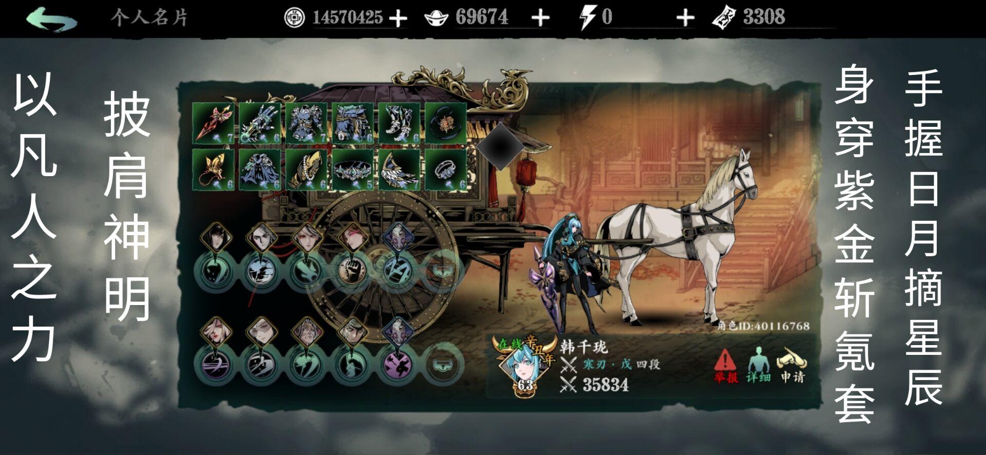 以凡人之力比肩神明! 你以为她穿的是女王八件套,不不不 这可是紫金乾坤套,全服限定一套,以杀气威慑敌人,百米开外取敌将首级,鄙人有幸靠龙妈保住一命,今日一见,着实牛逼 你以为她带的是绿武二件套? 不不不 这是太极斩魔套,特点是开挂不被抓
