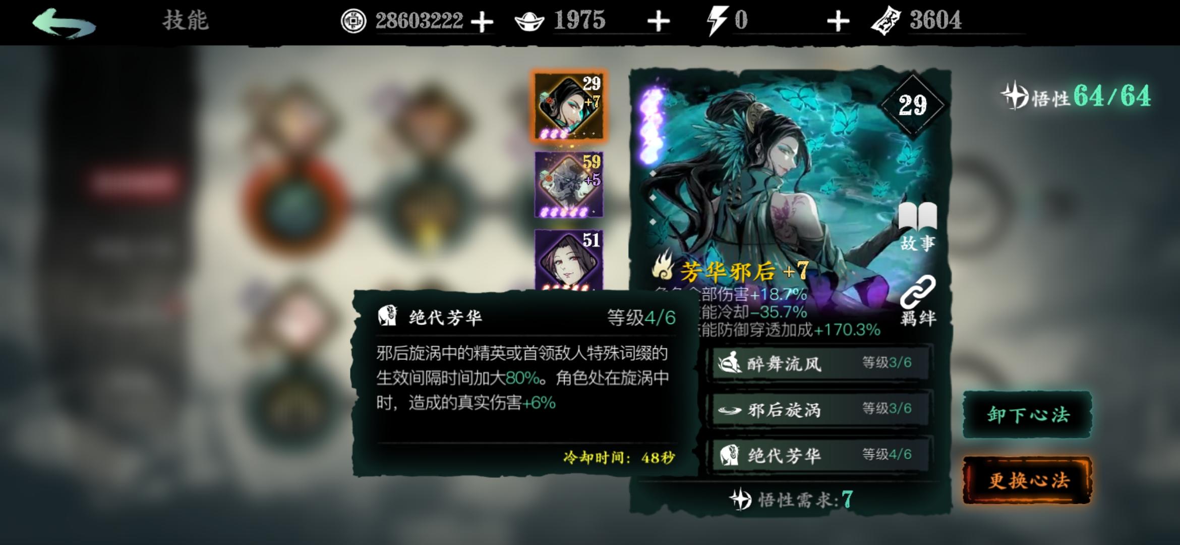 兄弟们,就没人吐槽一下这个邪后吗?这个绝技cd太长了吧?而且绝技效果也拉的一批最恶心的是这个3绝技的加真伤必须要站在结界里,而放技能的时候结界是在前面,角色根本就没在结界里面这是不是有点不合理啊?好歹这也是个极限心法,连普通心法都比不过,希望能改进一下