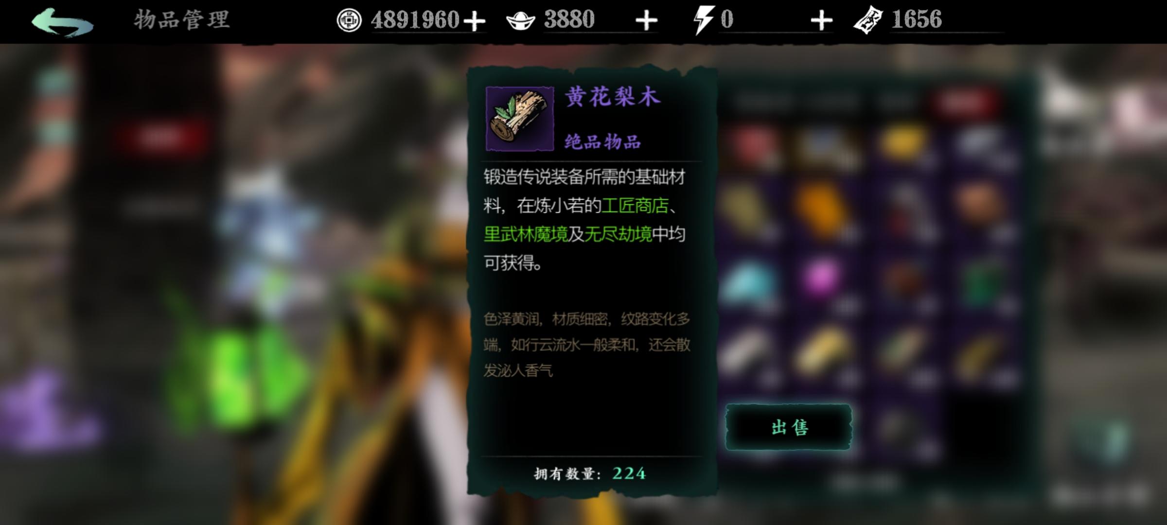 黄花梨木这个材料没有可以锻造的装备,希望官方在后续版本改进。