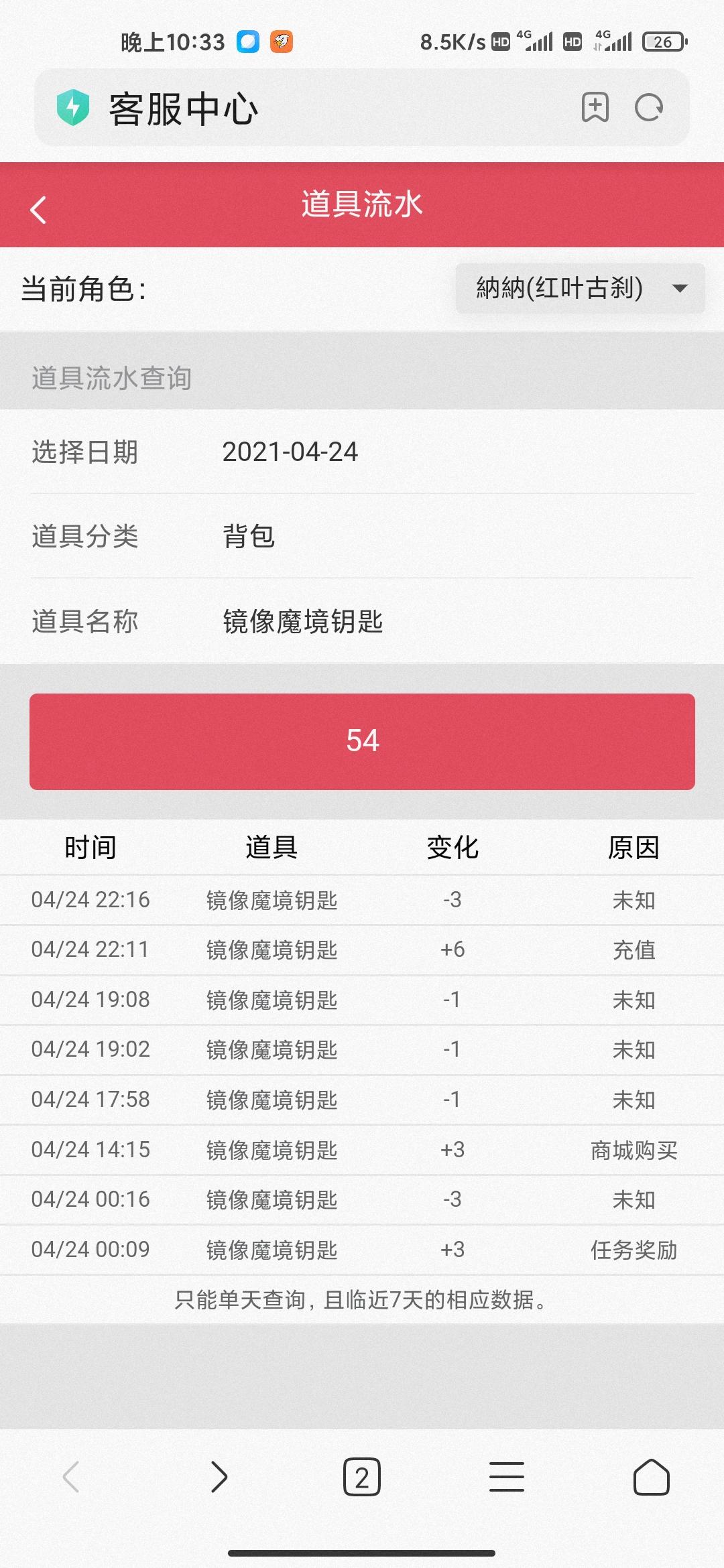 轻羽刷图能不能别来恶心人了,一放技能卡成ppt,或者直接掉线。我打龙本,被卡掉了,钥匙扣了,龙币没涨。客服网站机器人跟个傻子一样,问啥都听不懂。流水能查到钥匙,查不到龙币。龙币查不到也可以。但是其他的呢背包什么都没多,铜币装备小材料呢?