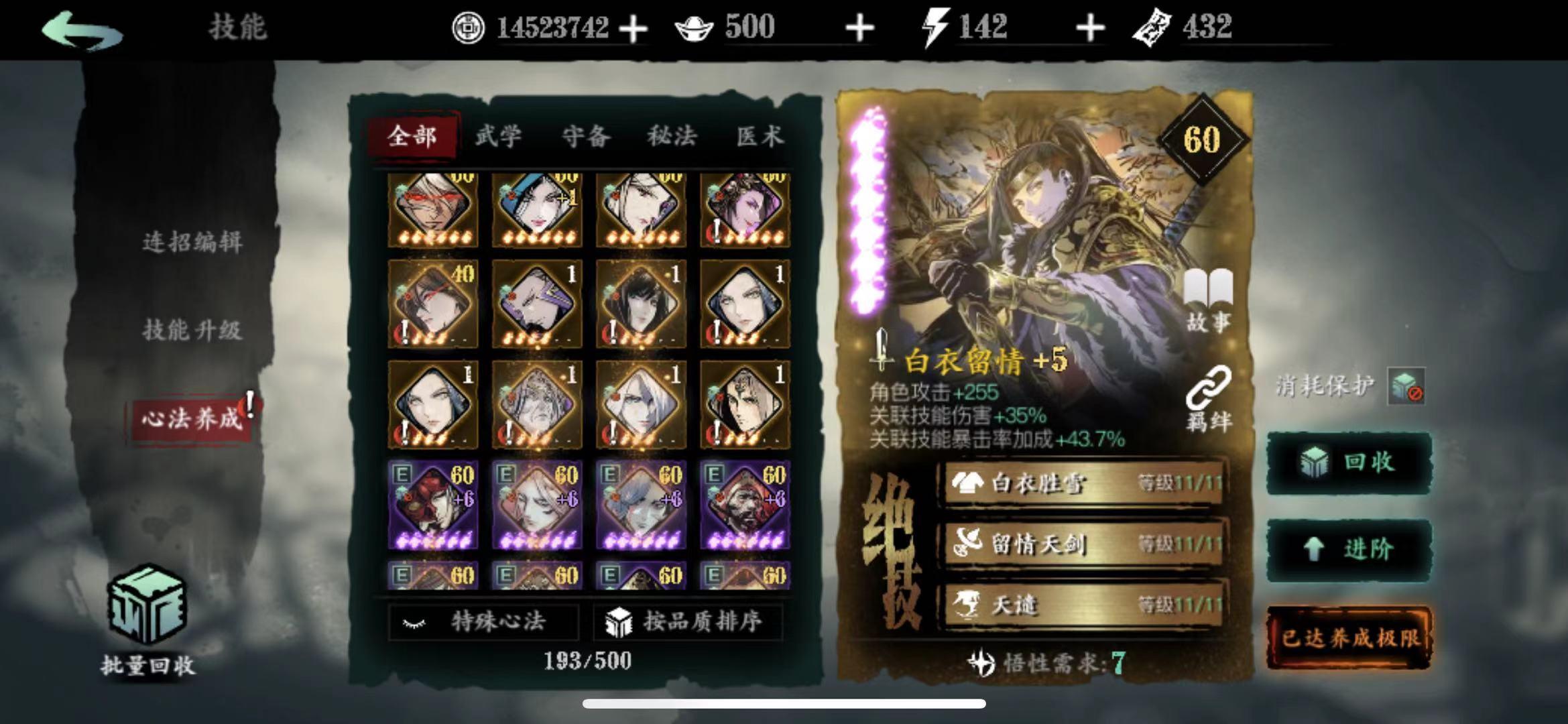 今天才发现,6星的心法不能吞噬4火珍藏变成珍藏,我裂开了!