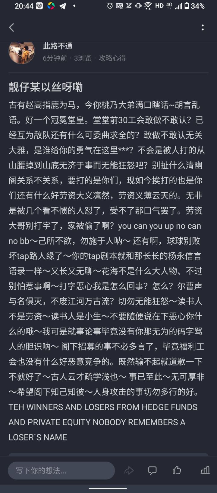 一朝不慎入灵游,自此一发不可收。为不落后把卡抽,只差坑蒙拐骗偷。有用无用卡全有,花销化作某车油。一腔热血喂了狗,多少大佬退了游。幡然醒悟终回头,再充一文都剁手。游戏缺啥的都有 唯独不缺带节奏Tap大瓜难得有,貌似次次有黑手。前有论剑左右投,一身罪业本无愁。此等妙计都能有,提出之人属实秀。皆因那点蚊腿肉,无耻之徒是真狗。别人罪业等他投,上去反手把人偷。先是个别不遵守,后是群里闹