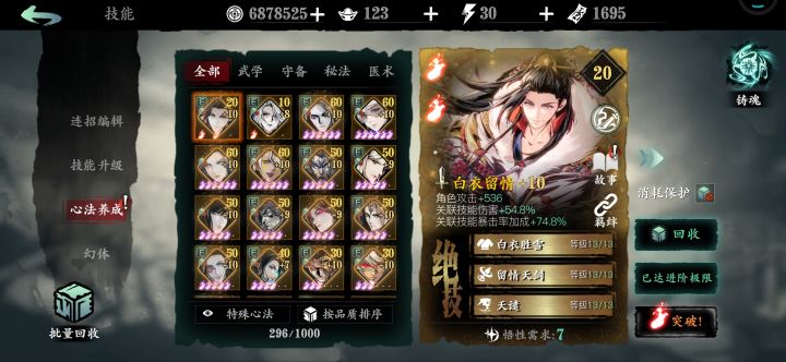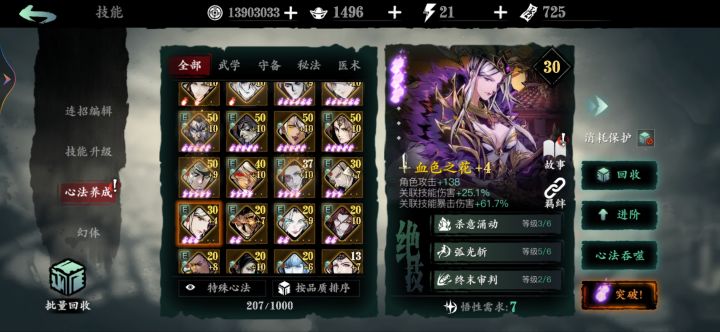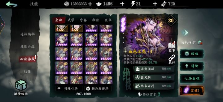 首先一部分人要提出对心法进阶的误区误区一:心法进阶等级越高越好误区二:盲目给魔堡进阶误区三:心法进阶材料越稀有越好下面我来讲述这些行为的错误之处一.心法进阶等级越高越好,不多说,上数据,以满级攻击紫卡为例,满级非典藏攻击属性为160心法进阶等级+1 攻击属性164 净增加4+2 攻击属性170 净增加6+3 攻击属性175 净增加5+4攻击属性180 净增加5+5攻击属性195