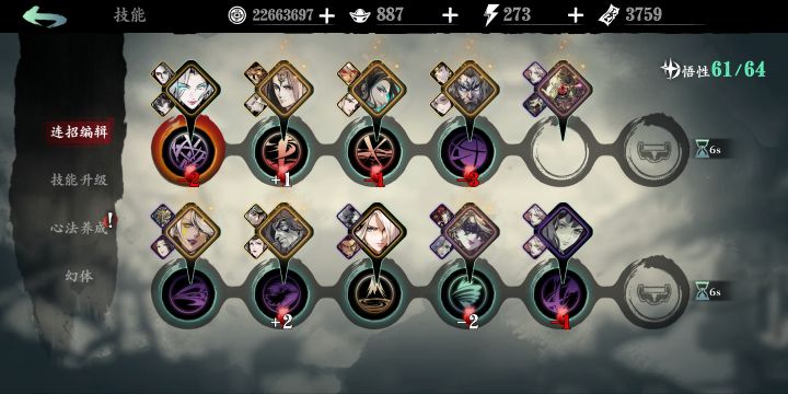 其实都是玩短链,用不上那么多技能点,我就连加杀意的技能都升满了还余下10多点,感觉这游戏主要还是心法,四星攻击心法满火满阶也有200多攻击