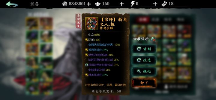这个游戏伤害结算还是挺简单,一共几个乘起来。打怪基本就是技能伤害(可以直接看成攻击力)*全伤倍率*精英增伤*爆伤倍率。现在真伤比较猛,狂龙那个可以算一个独立增伤。参考链接,龙体魔套加成关系https://www.taptap.com/topic/17921072下面举个例子,声明一下,虽然我用的是无锋,但是算法是通用的。每个职业都可以通过自己属性代入去算一下收益。比如我这个属性,攻击46