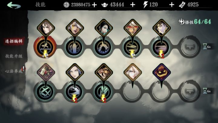 技能两套就能出奥义。奥义别乱丢,看好有剑客起来了马上丢。如果上链技能能丢也可以用上链继续连。不过最保险的还是丢奥义。然后第三套一般永夜也回复了,循环连注意控制技能释放空隙,可以用跳来衔接然后技能精研10隐龙,9暗龙,1轮子。因为有几次打到最后一个剑客发现1暗龙伤害竟然是最高的。武器刻印带蛮牛,我这是打完又换回冰山了。