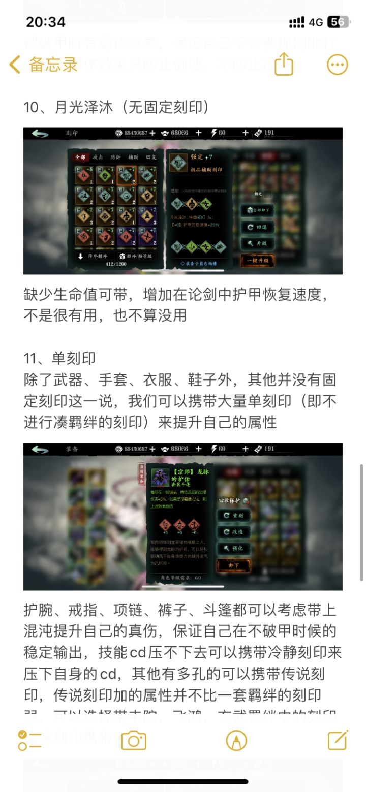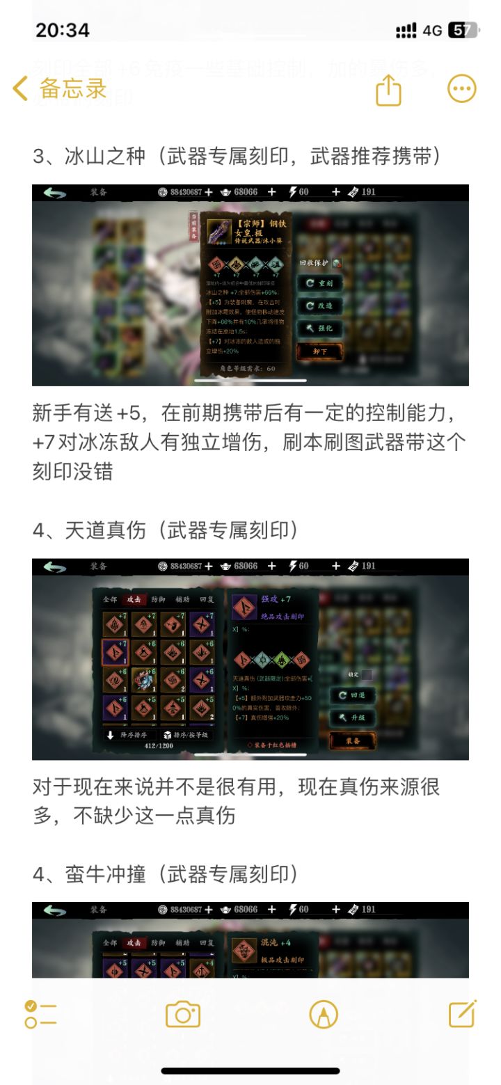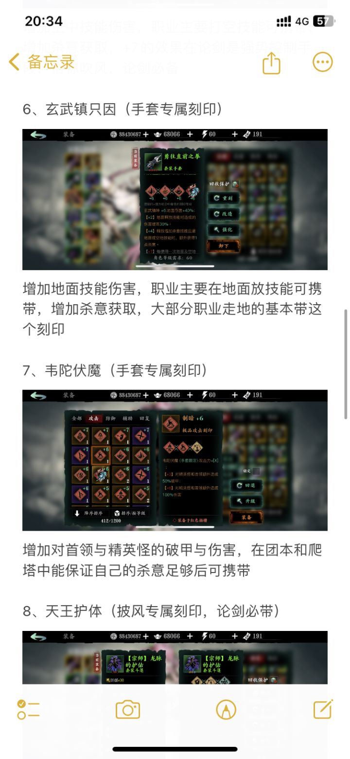 1、五圣祝福(衣服专属刻印,必带)注:每个刻印颜色要对应顺序才有效果能替代任何套装的衣服部位,我同时携带剑神套和武痴套,带上五圣刻印后就算我同时穿上剑神衣服和武痴衣服(只对套装有衣服部位的生效)2、灵燕飞舞(鞋子专属刻印,必带)刻印全部+6免疫一些基础控制,加的暴伤多,必带的刻印3、冰山之种(武器专属刻印,武器推荐携带)新手有送+5,在前期携带后有一定的控制能力,+7对冰冻敌