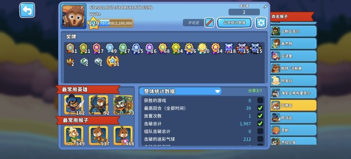 这个个人页面的统计数据老是不更新怎么办,有几个塔数据是正常的,有几个塔数据停留在上个版本,有些英雄的数据一直不更新,还是刚玩时的,明明我已经拿艾蒂安打过困难模式几十次了,它还是显示放置次数1(一直用的原皮没有买皮肤)