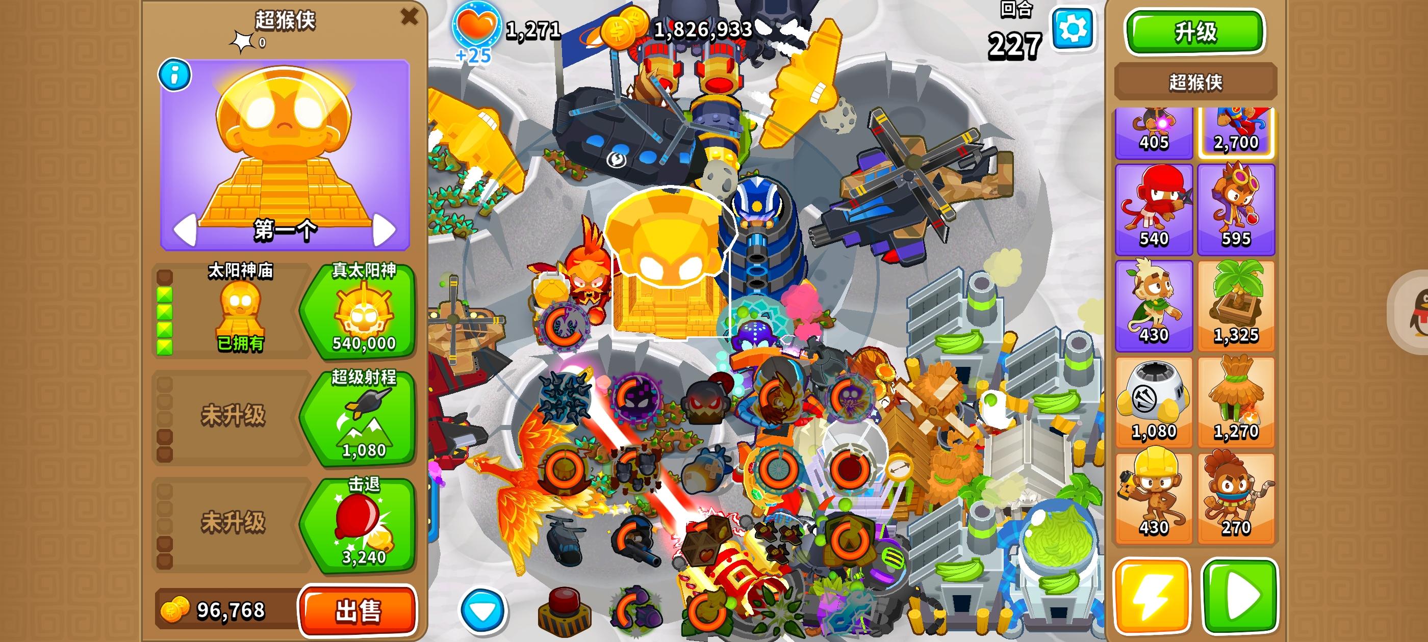 分享一下我的猩猩(点击)模式的一套阵容。1.开局在交叉路口放萨乌达2.在一个合适的位置(凭自己感觉,前期补伤害用,后期清漏气)放一个401的忍者,配一个420的炼金(升级顺序可以先301忍者,然后320炼金,然后再升4)3.我的习惯是先升级一个502的猴村(强迫症就想白嫖,因为做到5级猴村前不缺伤害,其实402也行的,然后猴村攻击方式选个强力,强力就是挑选场上最强的气球攻击,我觉得这样好用)