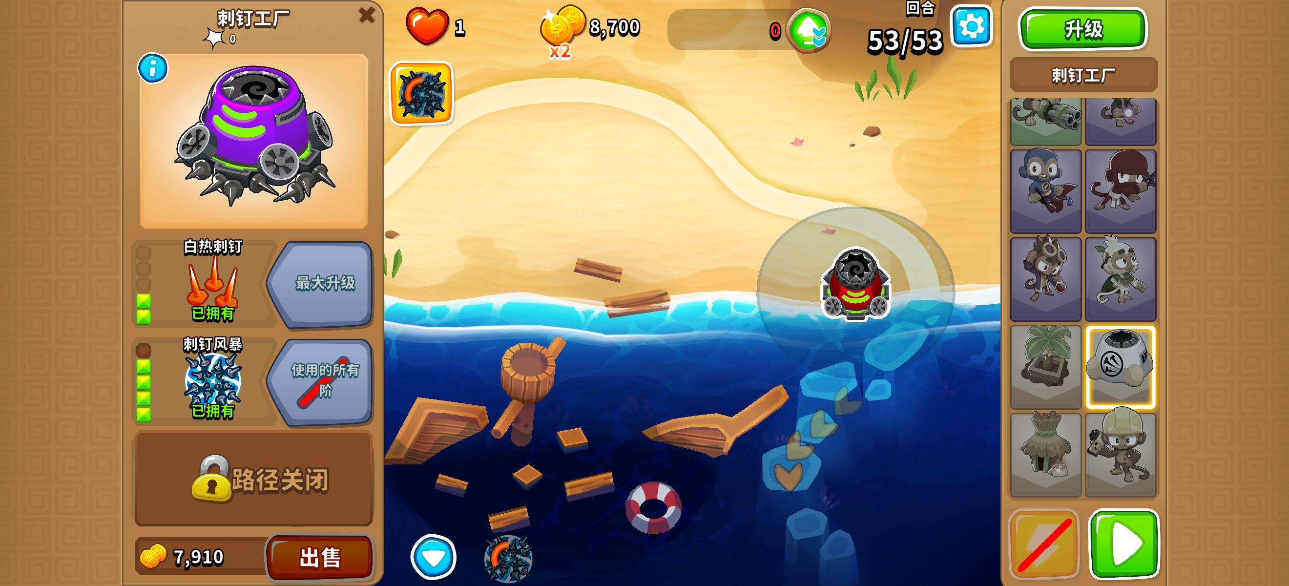 非双金过法:041刺钉。摆放位置尽量靠右。开局只能升040,要在技能好后立刻开技能,以不漏第一个气球。达到150钱后立刻升级041(快速完成操作),并不间断的一直开技能。很极限。双金过法:240刺钉。开局技能好后立刻开技能,以不漏第一个气球。之后技能好了就开技能,一直开。由于240刺钉比041刺钉的钉子多一些,相对没那么极限。#攻略#气球塔防6