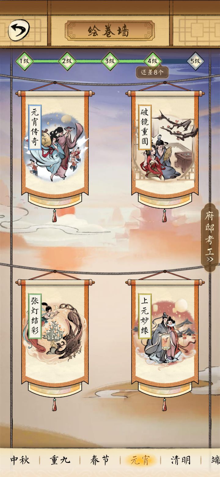 <春节单元> 直达【绘卷墙】https://www.taptap.com/topic/9877226<元宵单元>直达【绘卷墙】https://www.taptap.com/topic/9877849元宵☞【见闻柜】—《元宵传奇》直达https://www.taptap.com/topic/9878143《破镜重圆》直达https://www.taptap.com/topic/9878225《
