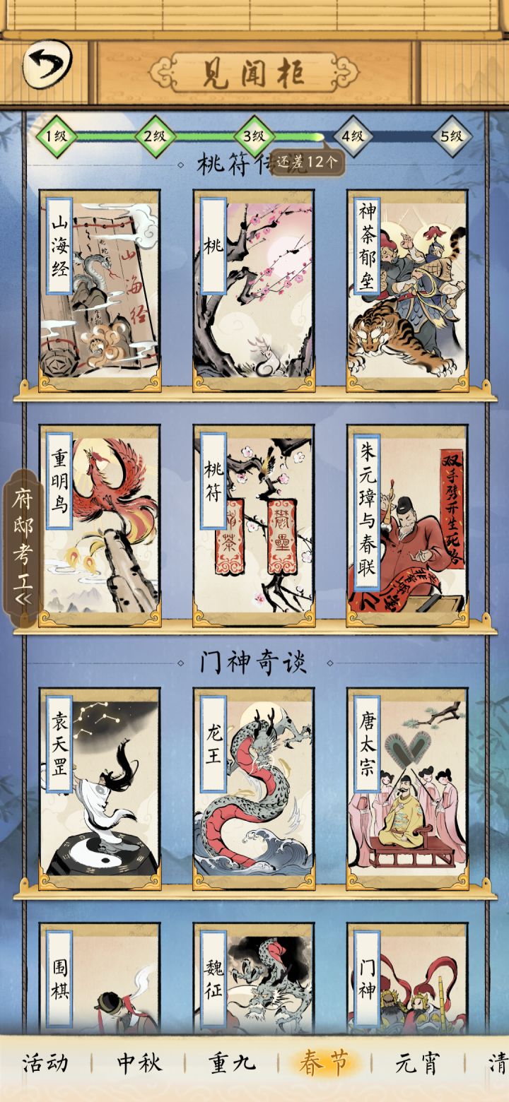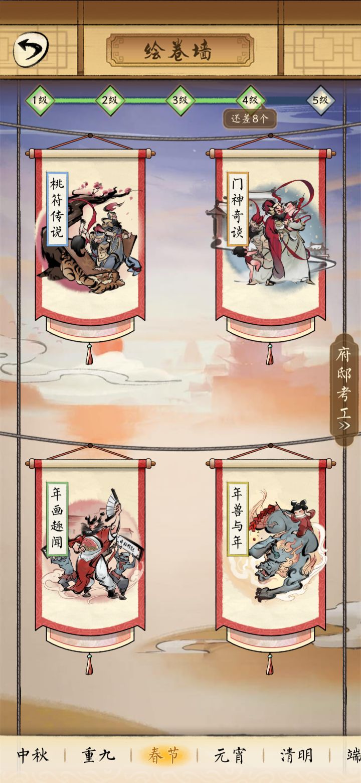 <春节单元> 直达【绘卷墙】https://www.taptap.com/topic/9877226<元宵单元>直达【绘卷墙】https://www.taptap.com/topic/9877849春节☞【见闻柜】—《桃符传说》直达https://www.taptap.com/topic/9877315《门神奇谈》直达https://www.taptap.com/topic/9877396《