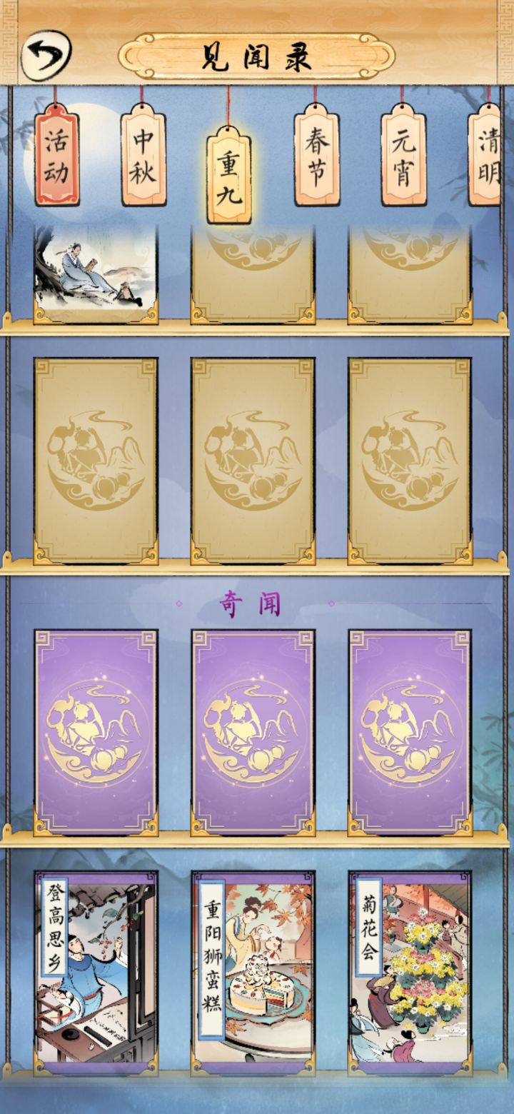 为什么我的重阳奇闻从第四个解锁的?无论如何也得不到前三个……bug吗?