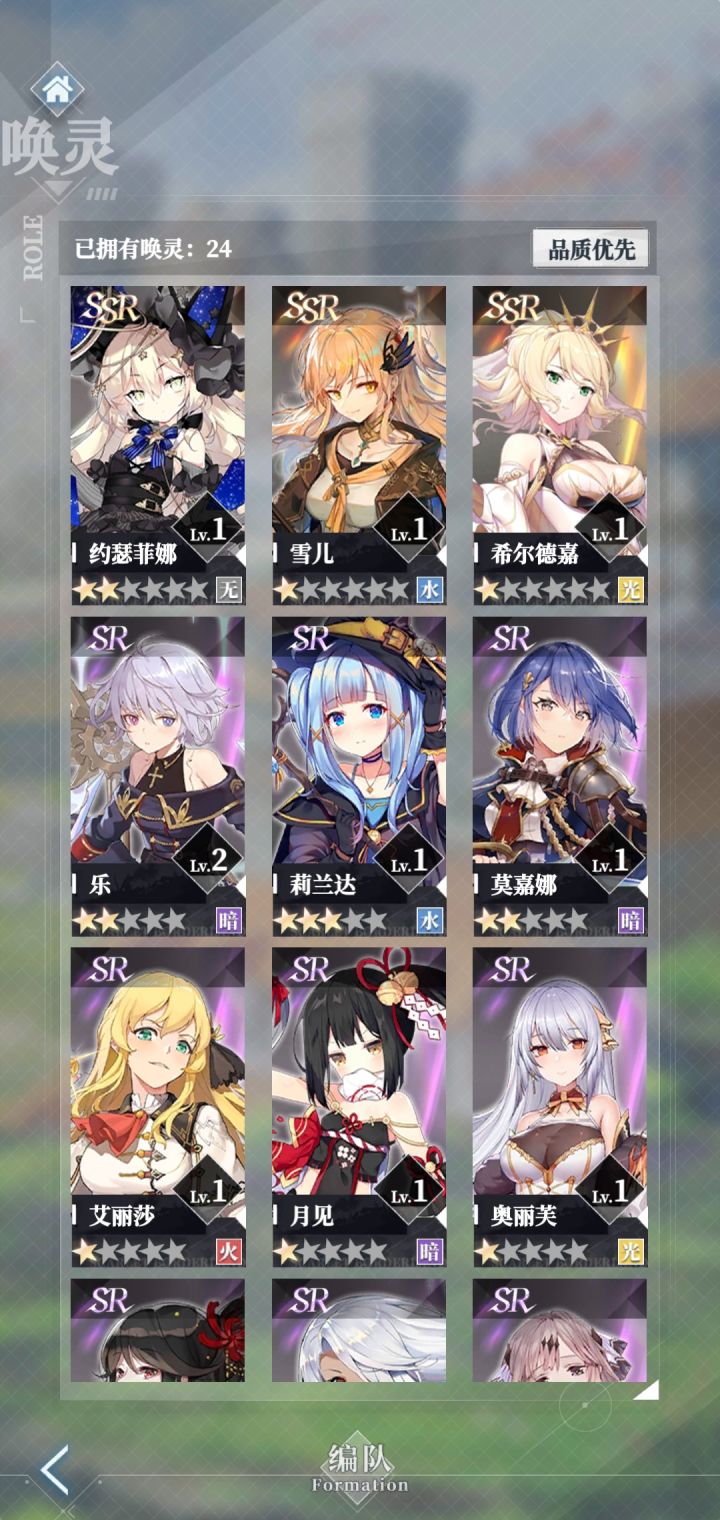3.敌方后排光系唤灵必须尽快击杀,因为敌方两名光系唤灵技能全部为增加护盾以及全体攻防buff,如果让两名唤灵同时使用技能,你相当于要多打一管血,同时敌方上排光系唤灵会使用调率技能,对我方单体进行高光属性伤害,如果让她放出两次以上,练度不高的队伍会直接崩盘,但此技能通常只会对其面对的前排(如果无面对前排则会对顺次向上/下排前排使用),由此,可以将坦位或莫佳娜放置在上排进行防御