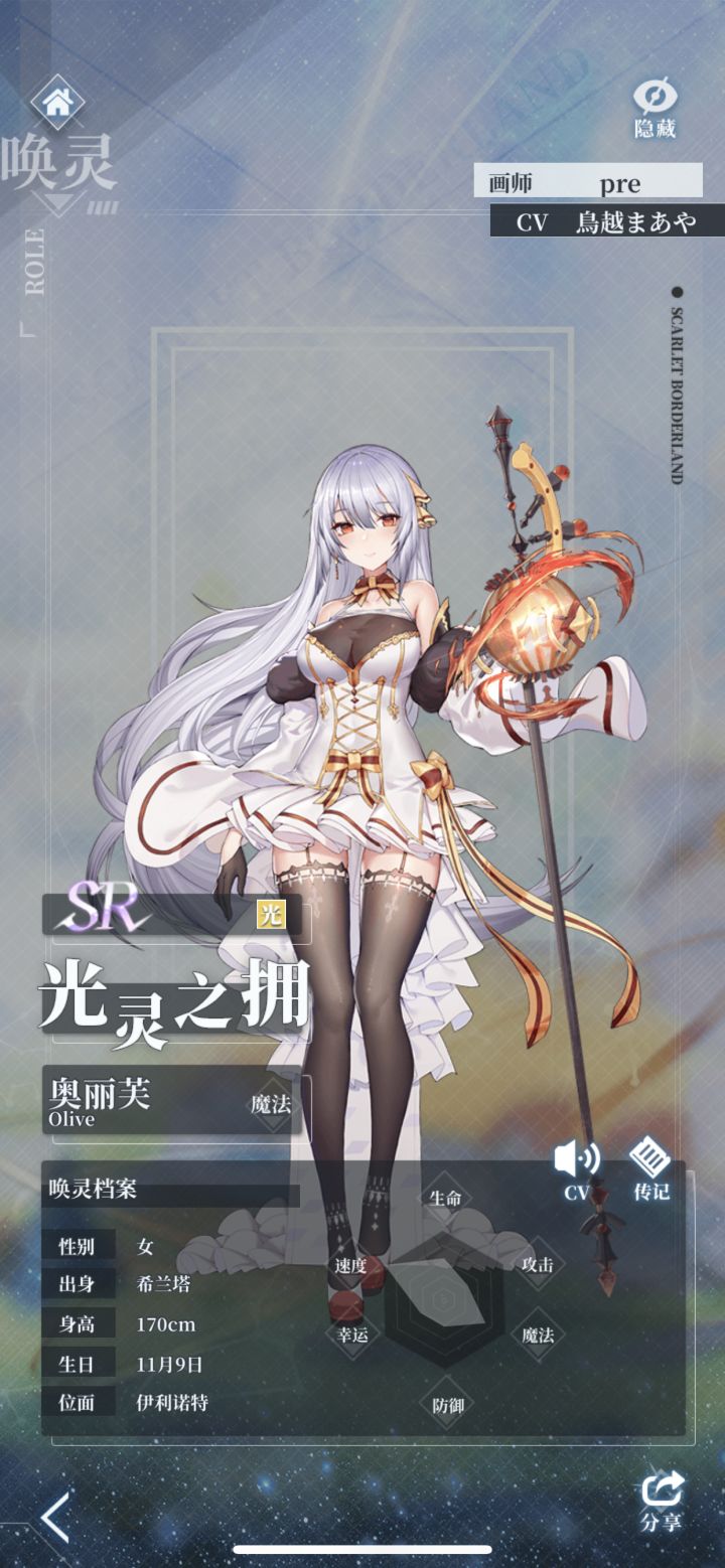 推荐理由:1:全角色最高速2:开场全员+命中3:全角色最优秀的普攻增加(比SSR雪儿高一倍无负面)4:技能sp消耗极低,且开场sp很高(特性加成),技能伤害(清对面集体一个增益buff)+护盾(护盾堪比R坦克数值)5:圣装百分比增加全队光属性伤害,每一级增加4%,满级20%,推荐带防装,组4光增加自身最大hp让护盾收益变高。(对比希尔德嘉满级圣装光属性伤害+9%,但是弱暗也是9%)6: