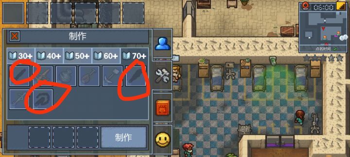 攻略 逃离13号病房 边境突围 开局我们要先读书 读到60就可以了 然后准备一个胶带,一个撬棍,一把锉刀,一块木头,做出第一把镐子,然后准备一个石油灰,和一个带着青色钥匙的教官,复制他身上的钥匙,准备一个打火机,和一个梳子,把它们合在一起,做成塑料青色钥匙,准备两把锉刀,一个胶带,合成剪刀,等到晚上点名的时候,先点名,然后去发电机里,关掉发电机,接着去监狱的左边,等待点名结束,用剪刀剪开铁丝网,用稿子破坏墙,逃出生天