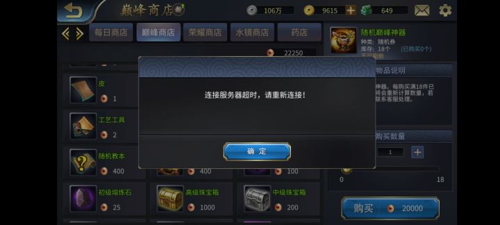 我巅峰商店兑换巅峰神器兑换不了是咋了,求解决兑换就会这样,见图,区服:乘马射虎 昵称:孔子轩