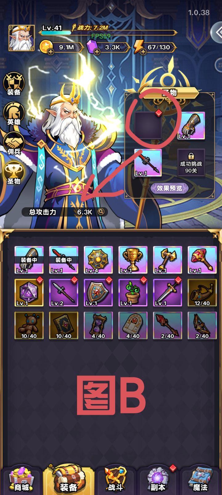 因为游戏无限火力一直突破不了50000分,费尽九牛二虎,终于突破65关,增加一个圣物装备栏,又发现圣物的[收藏属性]并不是直接增加攻击力,情况如下:前两张图A,总攻击力是约6300,后两张图B,我把攻击力220的圣物拿下,但总攻击力没有变化。谁能告诉我一下,这个[收藏属性]到底怎么生效