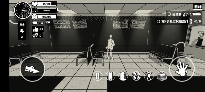 再就是特定资源了,只能在人力公司发布的工作和翻找垃圾桶获得,分别为木头材料(伐木得)、建筑材料(搬货得)、有机材料(数坤得)、维修材料(分拣得)和包装材料(目前只有翻垃圾桶)。然后垃圾桶根据位置不同翻找出来各类材料的概率也不同,分别在深圳站左侧(建筑、包装)、快递柜右侧(维修、有机)、公园左侧(包装、建筑)、后街废品站右侧(有机、维修)。翻找垃圾桶扣除25心情,半个小时时间且有25%概率手受伤。特定资源可以完成相应任务获取报酬以及解锁工作。