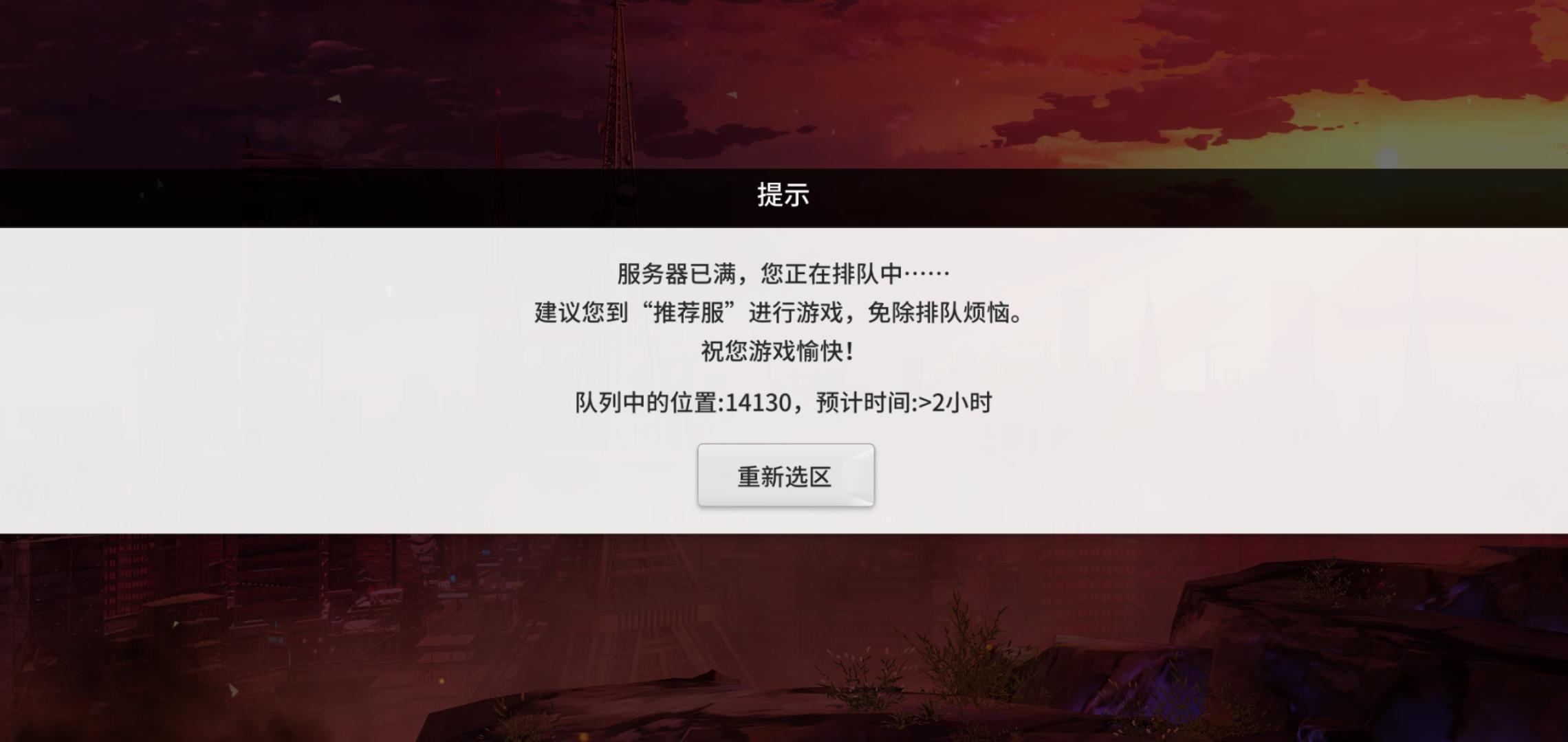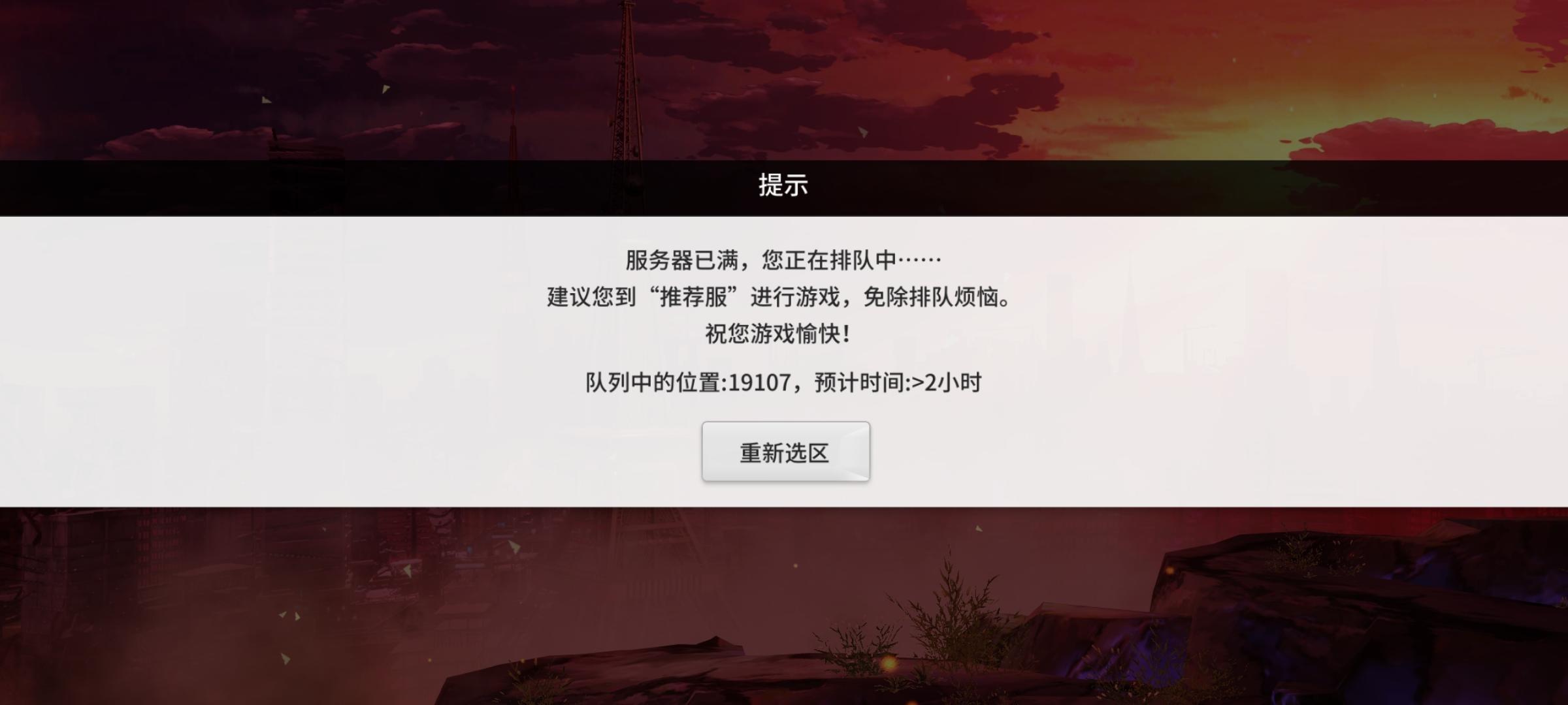 推荐服排队2w多?能玩还重选还要关游戏重新进?