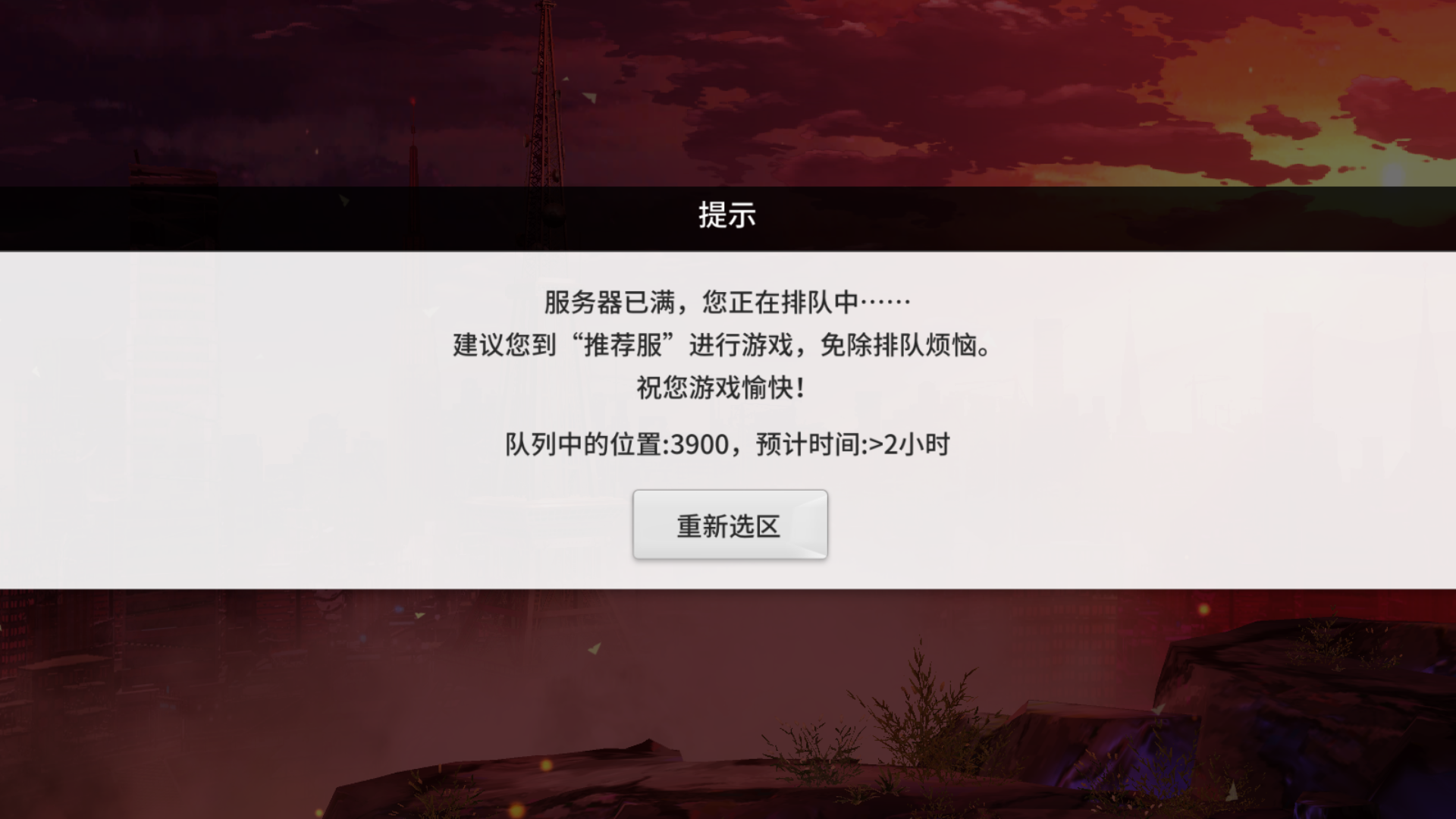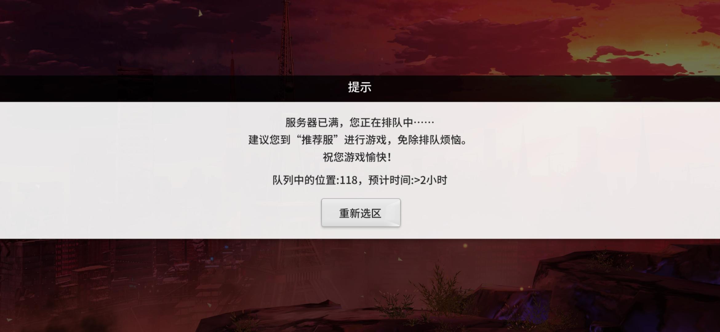 我新区刚把角色创建好,卡了一下,退出来重新进就要排队两小时,能玩??