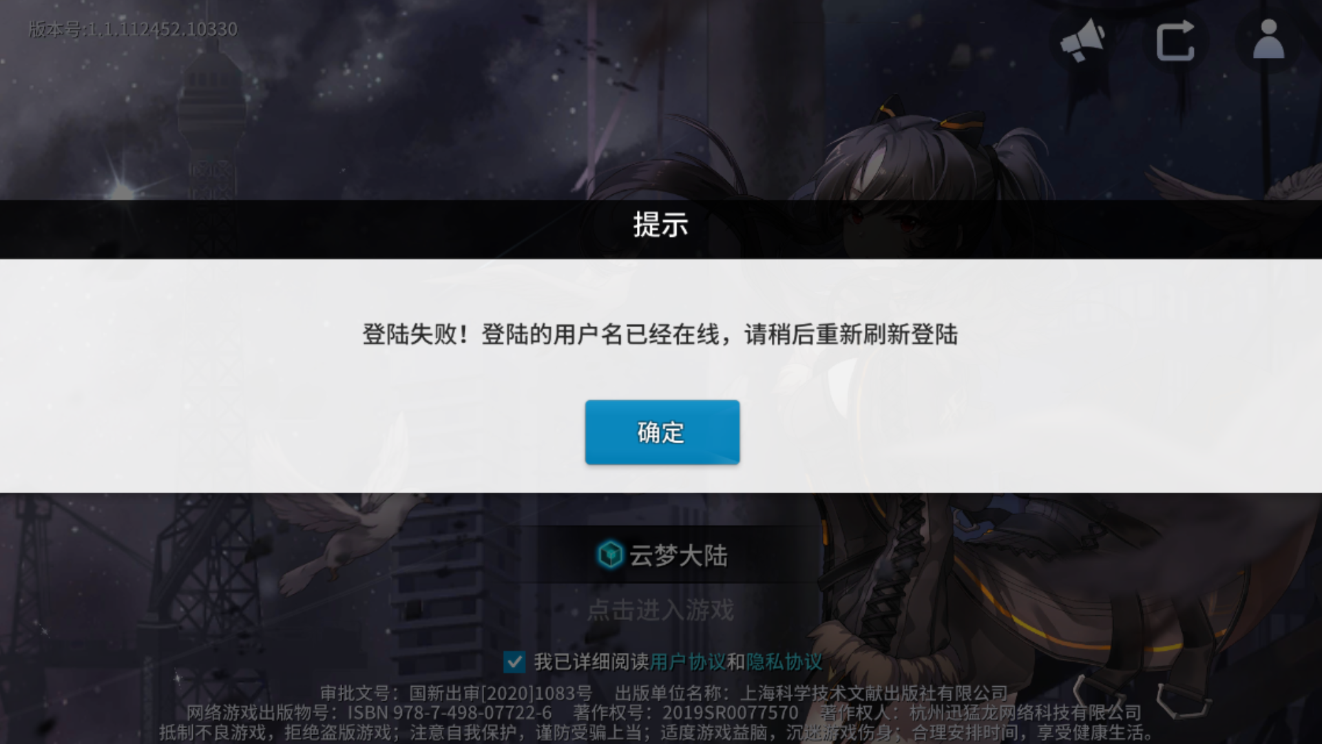 我游戏掉了在进就一直提示,角色在游戏里面让我刷新登录,我刷了N次了进不去