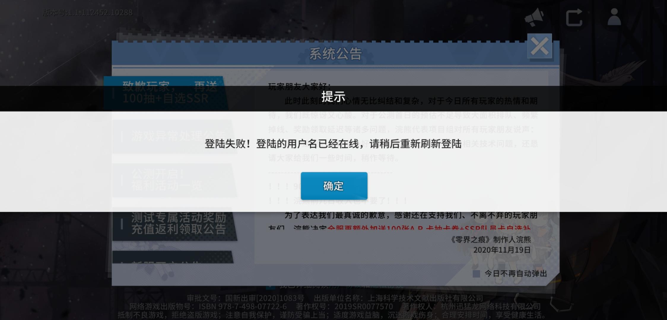 灵魂行者区,昨天就捏了个脸,然后断开连接,再进就一直转圈圈,今天修复了,不转圈了,而是直接告诉我别登了,卸了吧