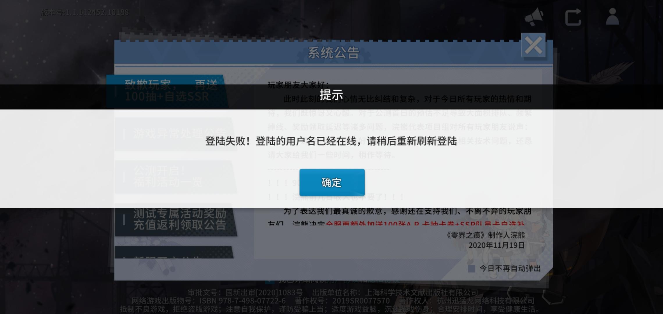 差不多半小时了,公告也没有,也不知道修复没,到现在还是说进不去,我任务都没做完,这是在劝退吗?