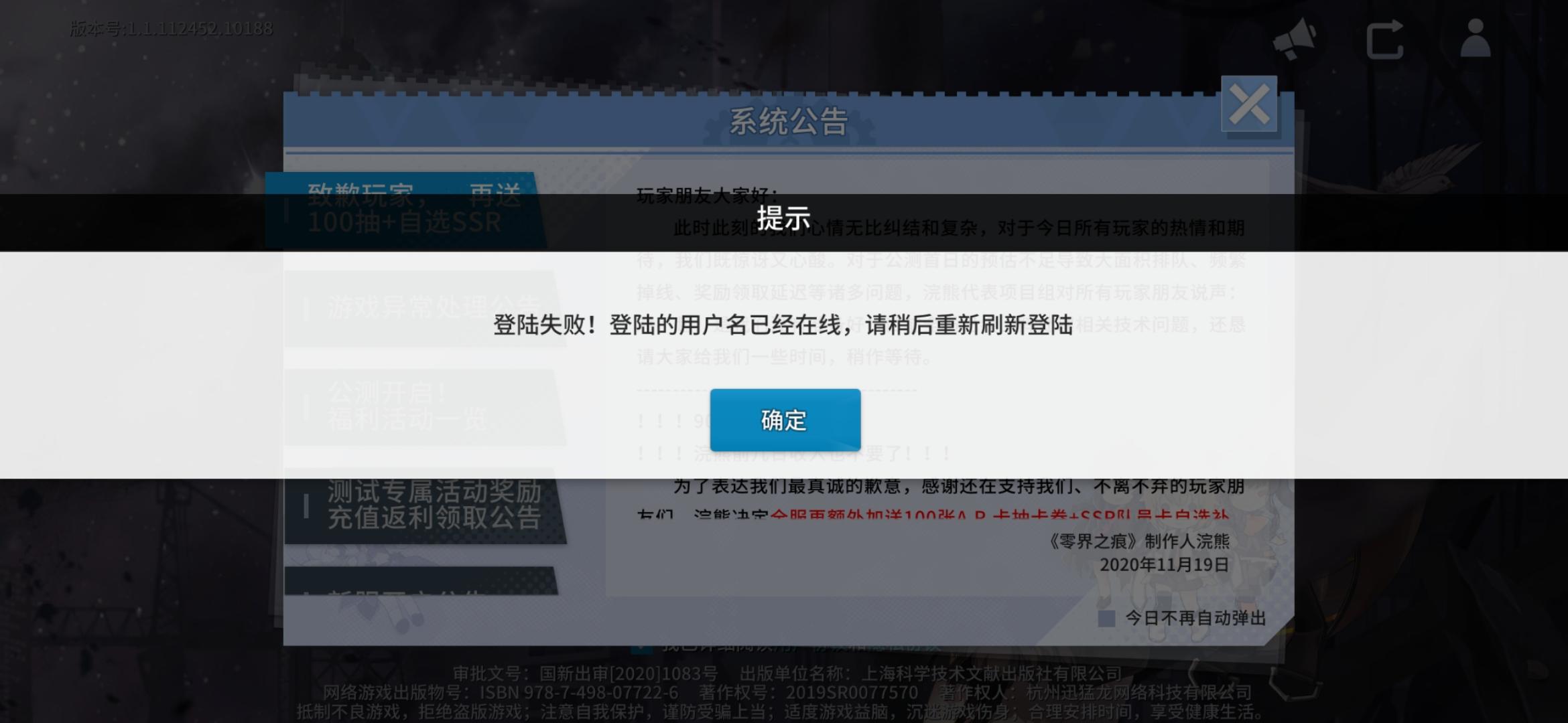 我服了,先是一卡注册,莫名其妙是未成年,然后换QQ注册一服,到现在都进不去,行,我在拿二卡注册,ntm又给我来个用户已登录???反正今天就死活不想让我上线呗???拜拜了您嘞,祝您关服大吉