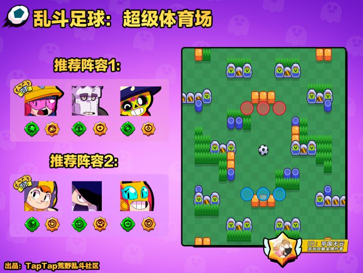 【足球模式——超级体育场】【特点:】整体偏狭窄,尽量选择中近程英雄【推荐阵容1——双坦奶妈流】弗兰肯(主动降噪耳机+坚韧皮肤)雅琪(喷气加速器+防护头盔)波克(音叉+治愈琴音)/拜伦(急救注射器+精准穿刺)本次锦标赛足球模式为最先,所以按照金字塔原则,足球模式也是最容易的,这套阵容操作难度低,适合所有玩家,前期雅琪开加速抢球,弗兰肯压前帮助压制,奶妈在后帮助回血,属于重坦突防的打法,高