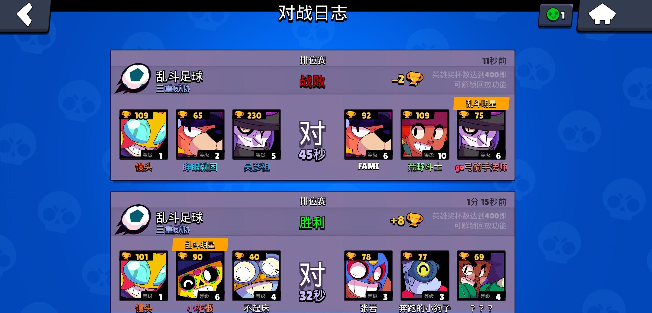 每次都是这样,劳资一级你给我整对面这么厉害,赢一把输一把无聊死了😅