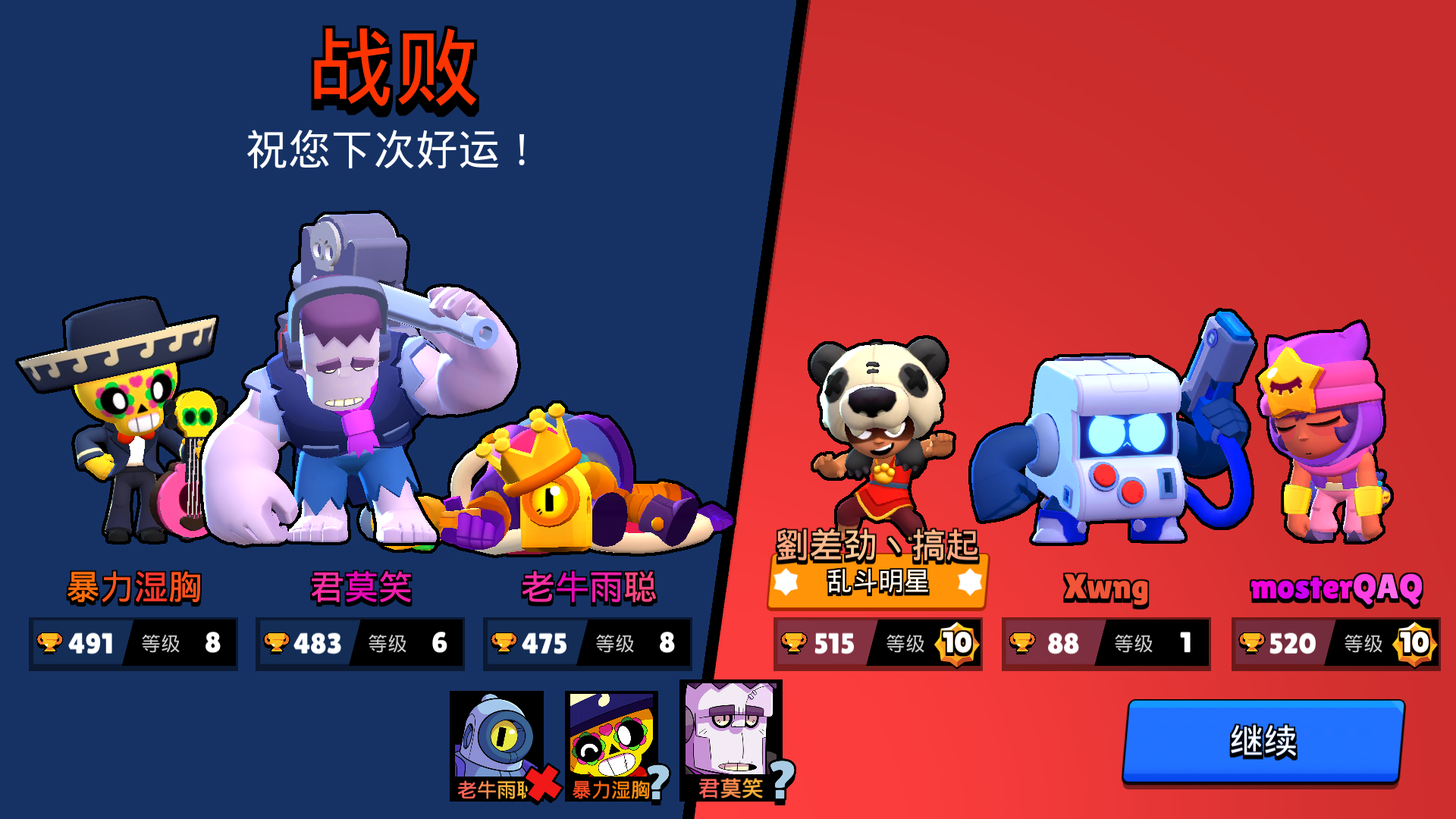 求求了,程序员写程序的时候能不能带点🧠???我一个总杯1w2的,虽然我知道主要看英雄单杯进行匹配,但是看看队友都是什么人???一个总杯900,一个总杯1k1???对面则最少都是9k???揣着16个宝石的雪莉还在对面家浪,属实带不动。真想捉着策划还有程序员,让他们来跟这样的队友打,输一把就不给一顿饭吃。