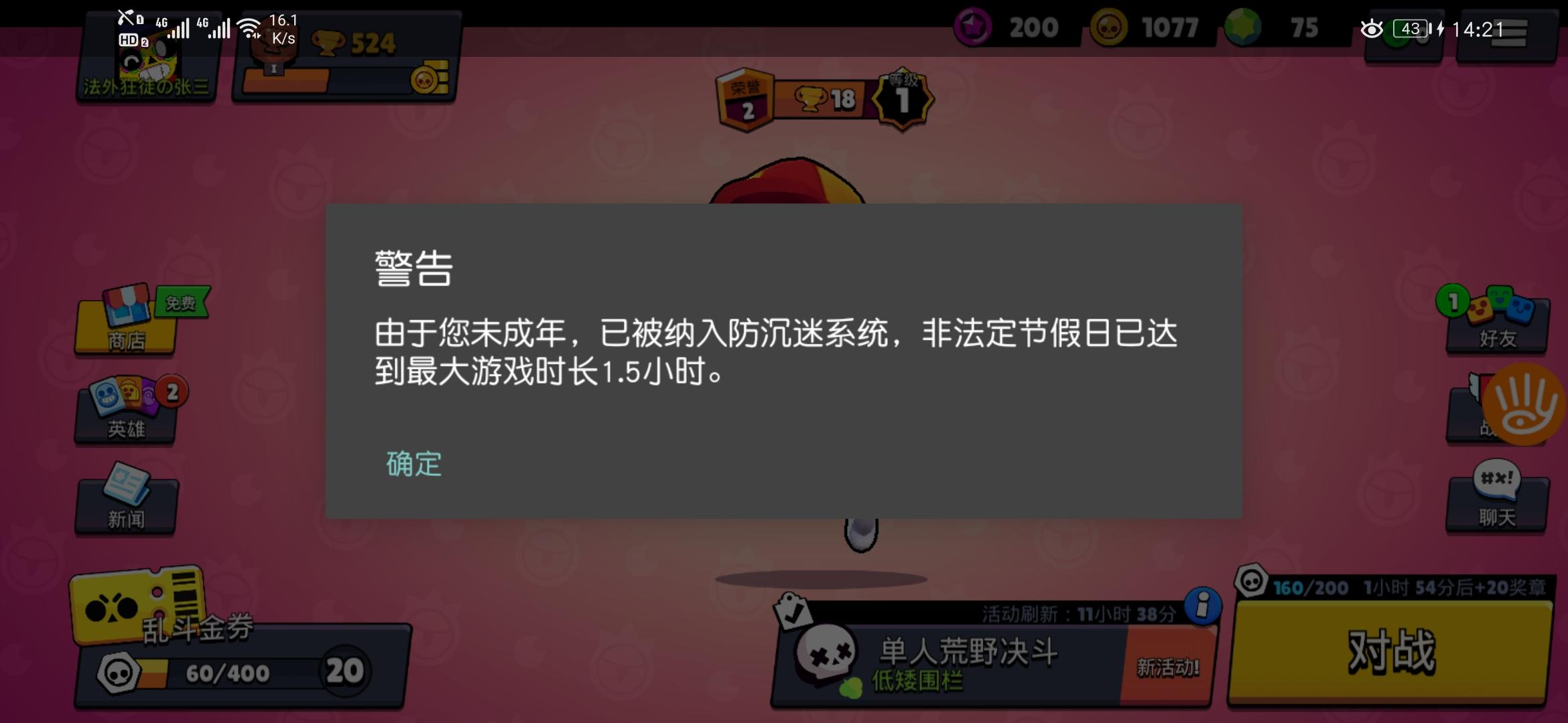 👴🏻早上刚玩就显示到点了,有人说两点刷新,👴🏻等到了两点,👴🏻很难难受