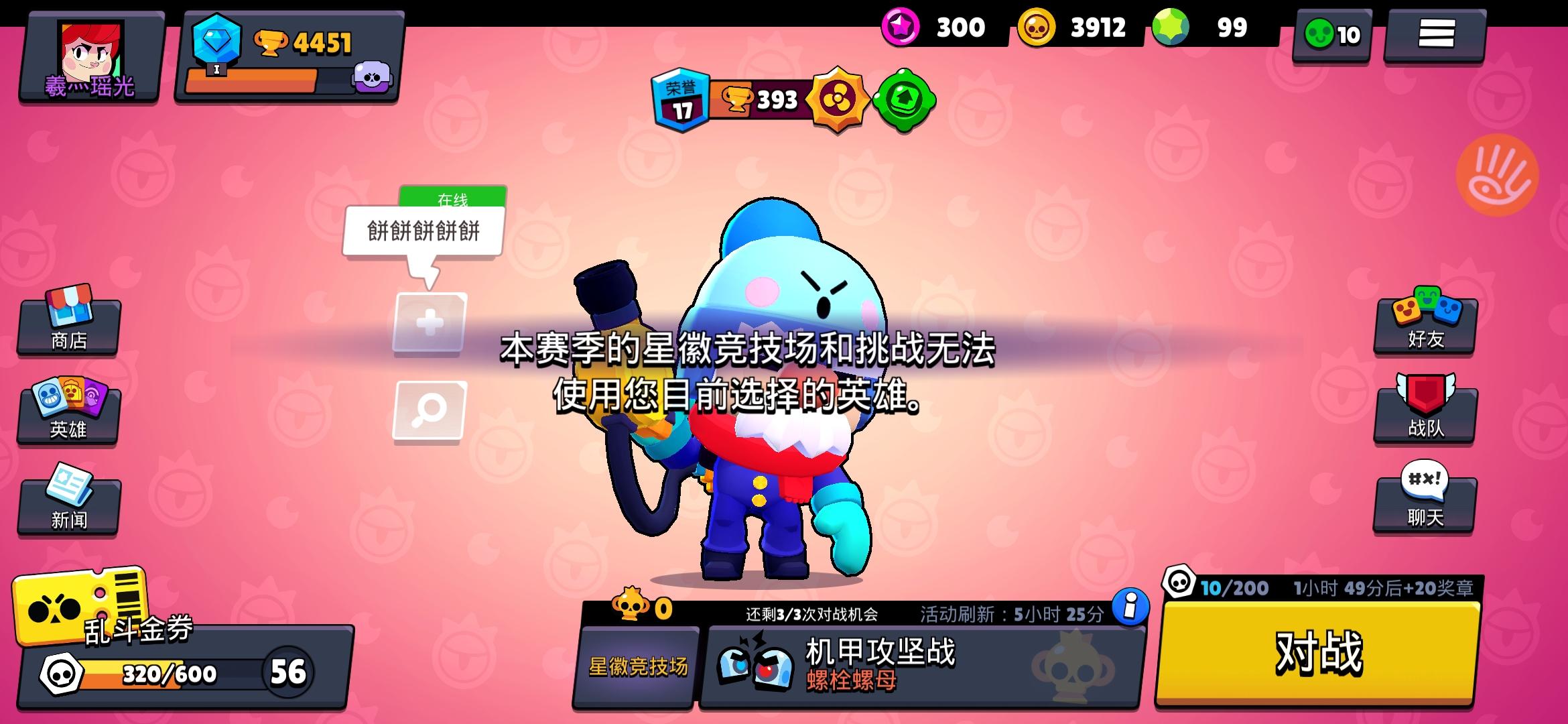 我3天肝到4000分虽然宝石模式挂机横行我还是觉得游戏不错集中所有资源练了格尔好不容易抽了星徽然后你告诉我这个英雄不能打星徽竞技场?不能打为什么不早说明。现在重新练一个9级还要抽到星徽要付出多少?游戏公司给我个解释。