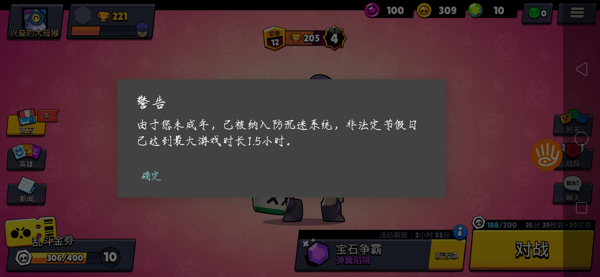 我一天一把没登刚登上就显示我时间到了。这是为什么